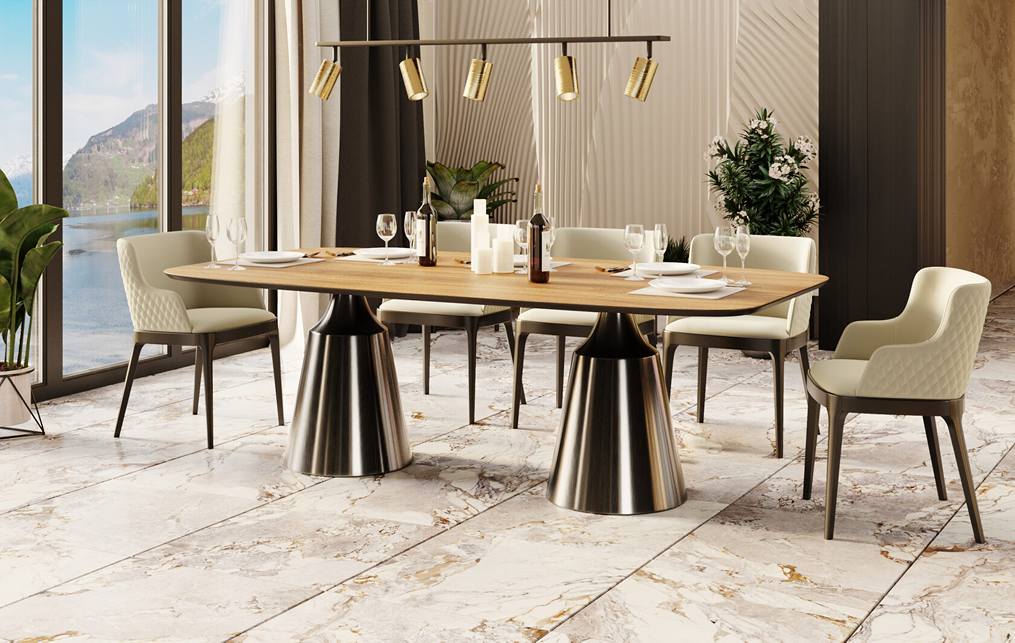 Одна из самых популярных моделей среди обеденных круглых столов - это линия Йода, состоящая из нескольких вариантов, из которых можно выбрать, чтобы персонализировать свою собственную дизайнерскую столовую. Основание состоит из центрального конусного ствола, массивный внешний вид которого облегчается металлической отделкой и соединением с узкой и отступающей столешницей, как бы напоминающей длинную элегантную шею, поддерживающую столешницу. Линия включает круглый керамический стол Йода и версию со столешницей из шпона. Ее органический и натуральный внешний вид подчеркивает путь бренда к экологичному дизайну, который создается из натуральных материалов с использованием методов с низким энергопотреблением.